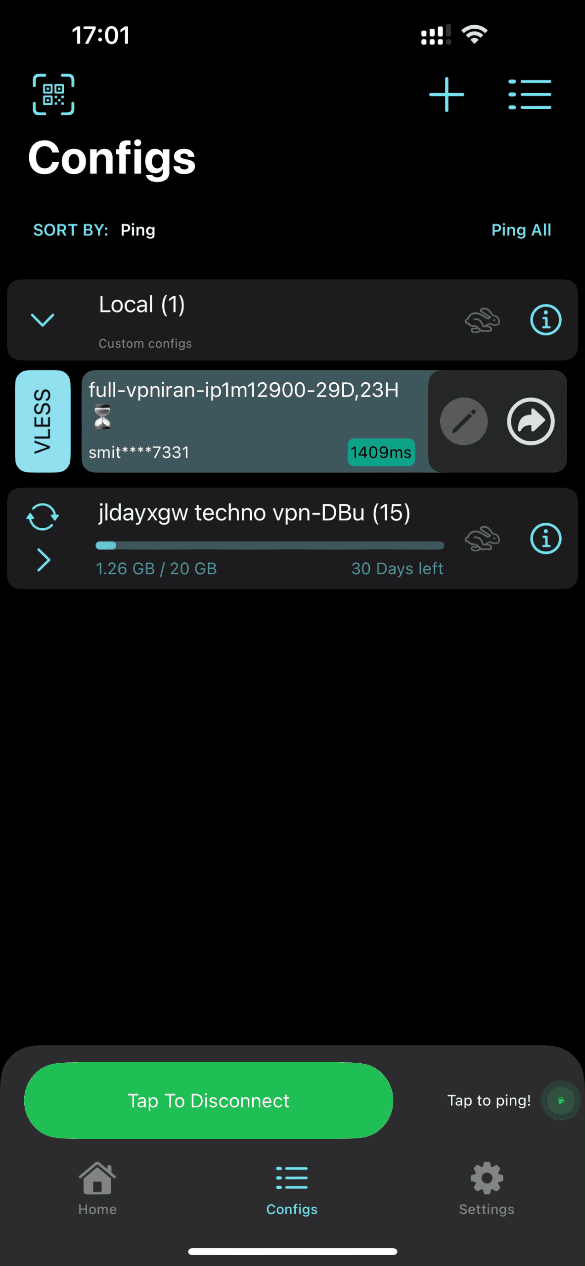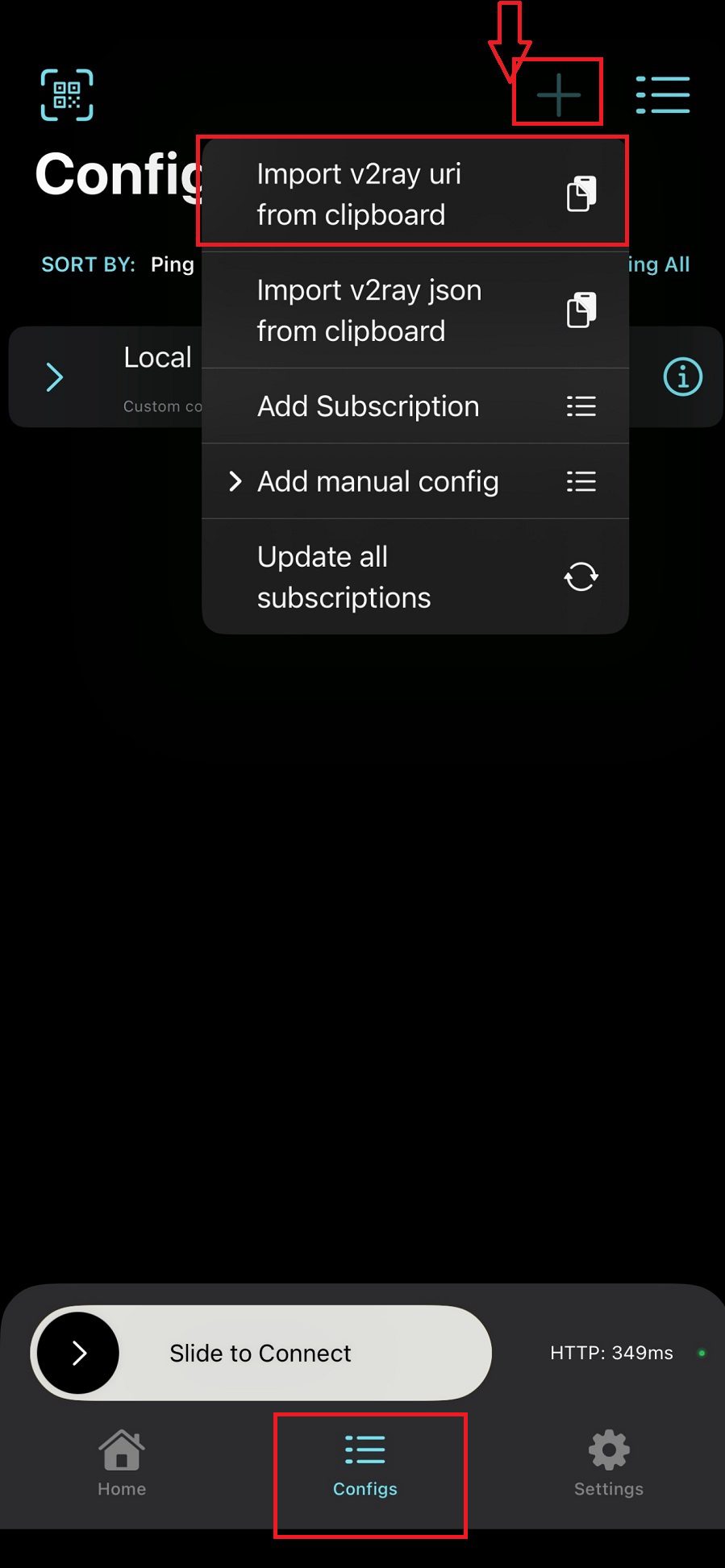 الف – روش اتصال V2Box با کد کانفیگ در آیفون